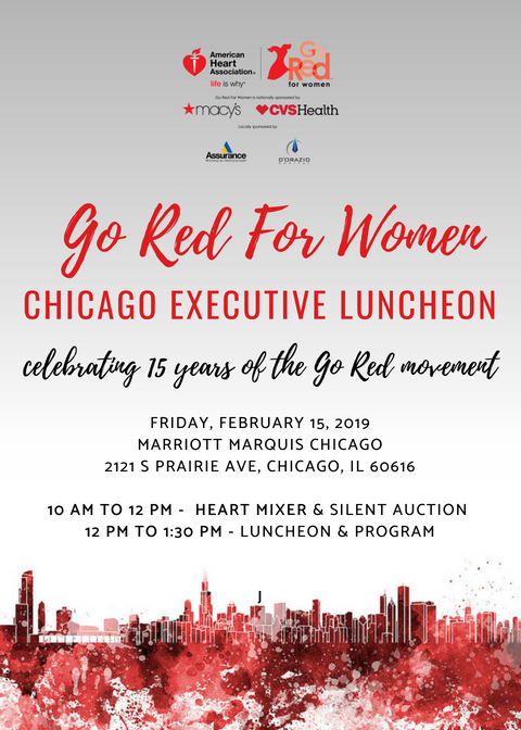 The Go Red for Women Executive Luncheon is the annual cornerstone event for the Chicago Go Red for Women movement. This empowering event focuses on preventing heart disease and stroke by promoting healthy lifestyles, building awareness and raising critically-needed funds to support research and education initiatives.